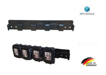 Eine einfache und kostengünstige Lösung um Ihre Akkus sauber an der Wand Ihrer Werkstatt oder in Ihrem Firmen KFZ zu verstauen.