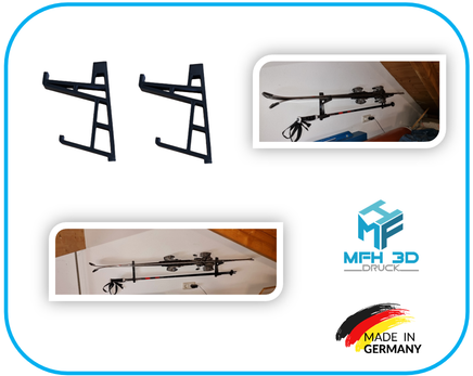 Der Halter ist kinderleicht mit 2 Schrauben und Dübel zu befestigen. Er bietet Platz für ein Paar Ski mit Stöcke und ist durch die Bauweise für jede Ski Länge passend. Untereinander angeordnet können die Ski der ganzen Familie platzsparend aufbewahrt werden.